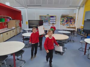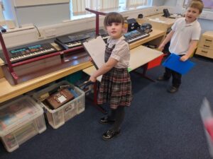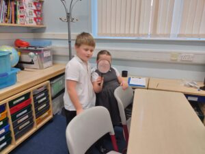 We explored nouns today as part of our literacy learning. We now know that nouns can be a person, a place or a thing. Working in two teams, we explored the school building, hunting for different nouns that we recorded in our notes. Some nouns that we found included a phone, a bell, a magnifying glass, a drum, the Science Room and even Mrs Stewart!