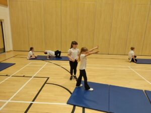Our floor gymnastics skills continue to develop, as this week we began to practise cartwheels, bridges, hollow dishes, and back support. These moves developed our skills in balancing, strength and control. We finished the lesson by combining a few moves into a short routine, which we demonstrated to the rest of the class.