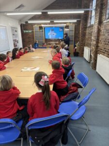 Next, we headed to the education room for a hands-on STEM activity. The class planned how to build a super-tall lighthouse and thought carefully about what makes a structure strong and stable. Once our ideas were ready, everyone used blocks to bring their lighthouse designs to life!