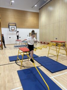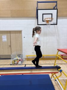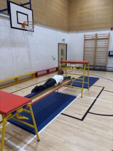 Today in gymnastics we had the big equipment out, which the children were very excited about. There was lots of enthusiasm in the hall as everyone got the chance to try different activities and explore the equipment.