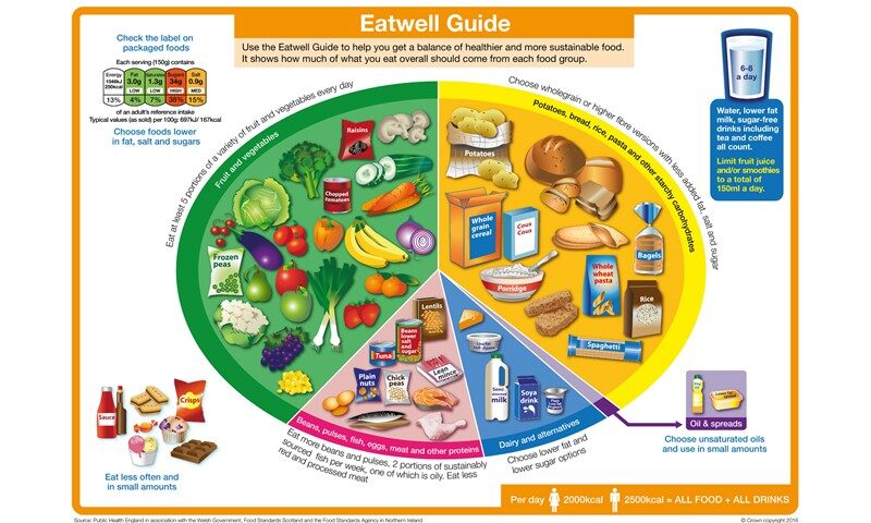 We will be learning about the 5 food groups and why each is important in our diet. Below is a copy of the Eatwell Guide.