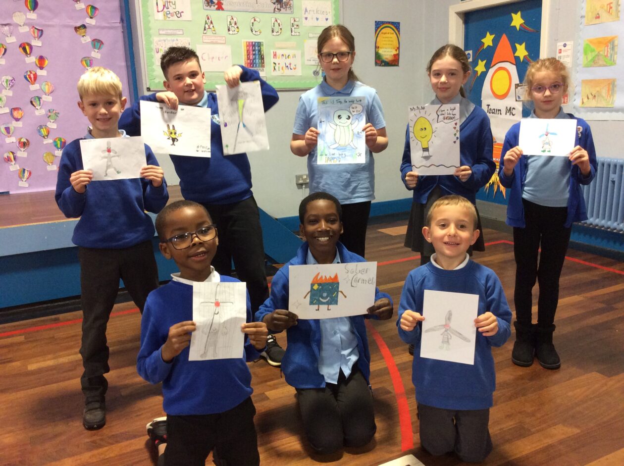 The Eco Committee set a design challenge for P2 &P3 to draw ‘Windy’ our Power Down champion. We also asked P4 -P7 to create a new Eco mascot just for our school.