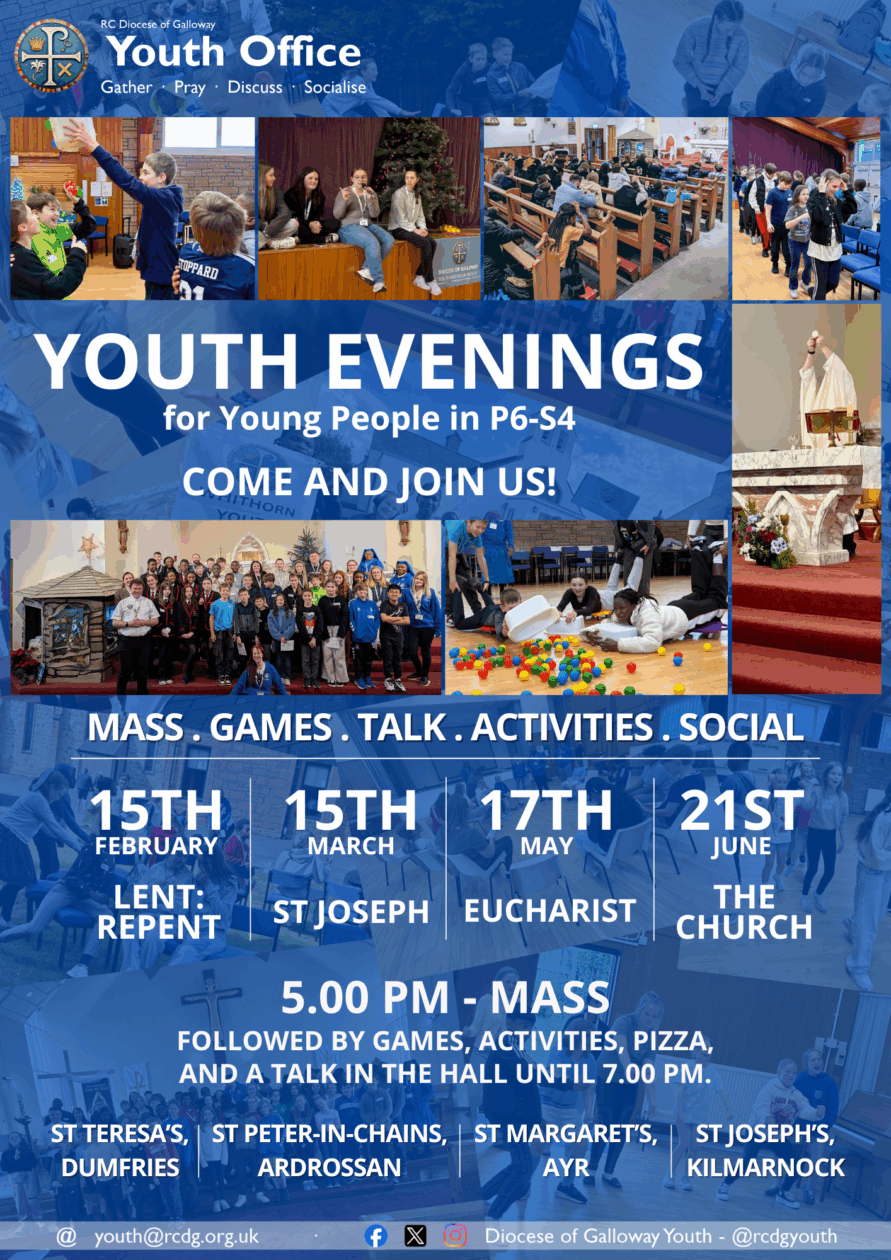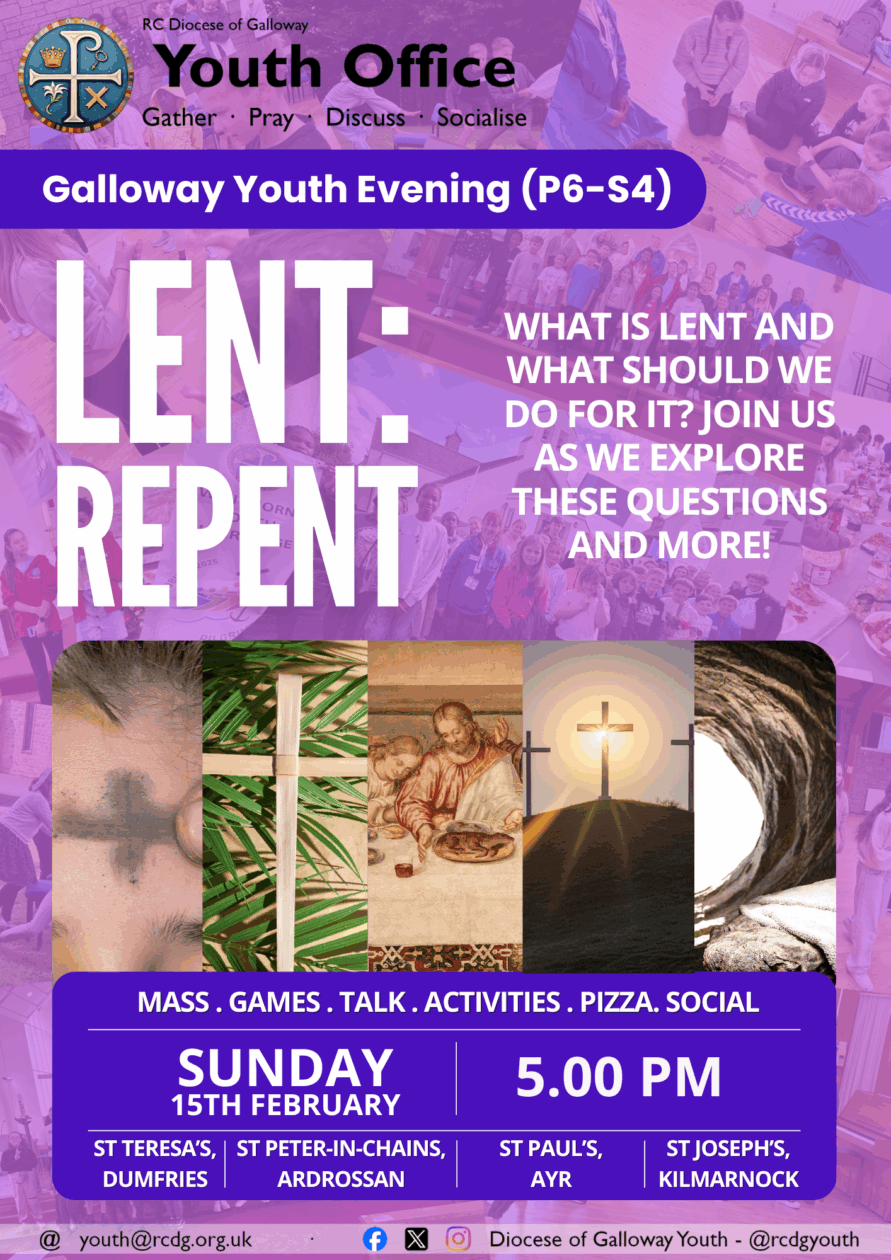 Whole School News Diocese of Galloway Youth Information 2026 February 3, 2026 Mrs Templeton Letter to Parents Carers – Advent Youth Retreat 2026 Share this: Click to share on Facebook (Opens in new window) Facebook Click to share on WhatsApp (Opens in new window) WhatsApp Click to print (Opens in new window) Print Click to share on X (Opens in new window) X