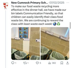 Our Share Tray has continued to be placed in the dinner hall this session, where children will place unopened food items they do not wish to eat, so that instead of it being wasted, it can be eaten by one of their peers who is still hungry.