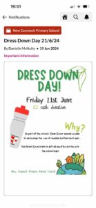 Our Parent Council hosted a Dress Down day, asking for money donations, where the proceeds would go towards providing every P1 pupil with a reusable water bottle. The bottles have been sourced and are in process of being purchased by our Parent Council. We are hopeful to be able to distribute these to P1 and P2 pupils by the end of this session with the aim to roll our further across the school if funds allow, or promote and encourage families to buy themselves.
