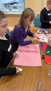 We all had a great time on the trip! Sarah read three stories to the children and gave them six new picture books to bring back to school. The children got a dog man mask to take home with them. Angus brought something very special to show Sarah and the Book Club, his Blue Peter Book Badge!