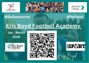 The Kris Boyd football academy (Boys only) & Rose Reilly football academy (Girls only) at Ayrshire College restarts week beginning 26th January.
