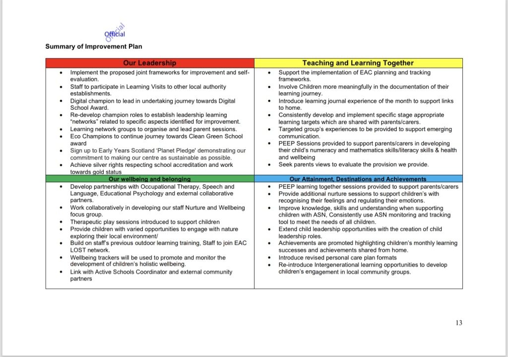 Improvement Planning Please have a look at our Improvement Plan Priorities for 2024/2025 Improvement Plan 24/25 Screenshot