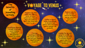 We took part in a whole school competition to design a poster on travelling safely and sustainably to school. We aim to encourage as many people to walk, cycle or scoot to school.