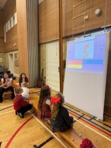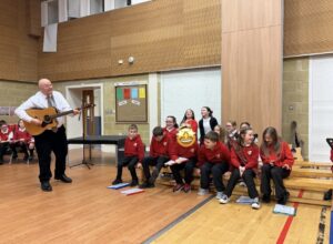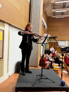 Our Strings Music Teacher Mrs Hill and her 2 children, Maeve and Adam, entertained us with their music and even had us up dancing along.