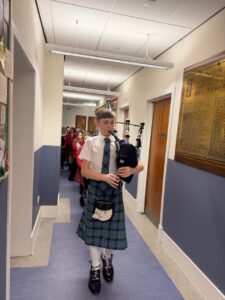 Former pupil, Ruaridh McMeekin joined us from EPIC bagpiping to play for our guests and young people as they entered.
