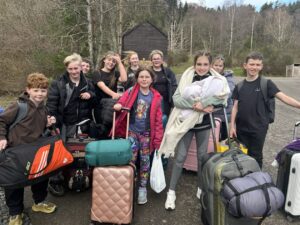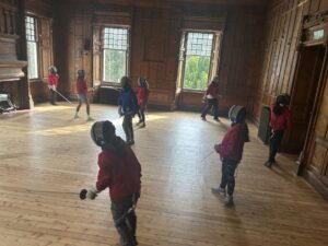 After a good night’s sleep, we started our day with fencing, followed by vertical challenge, archery and the giant swing!  This afternoon saw some very wet weather, making the walk back from the swing very muddy … some of us (yes me included) may have slipped in the mud!  🙂 The children are currently trying to pack before going to the disco.