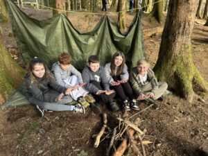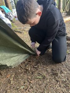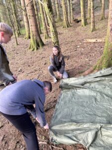 So after maybe not too much sleep and a lot of night time chatter, we had another busy day!  Our day started with Survivor, where we built shelters, started fired with flit and steel and creating wood shavings with a knife!