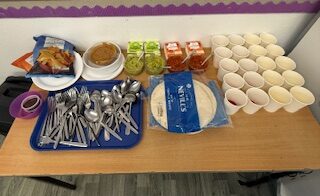 We played Loteria (Mexican bingo), a Bean Challenge and sampled some Mexican cuisine while listening to traditional Mexican music!