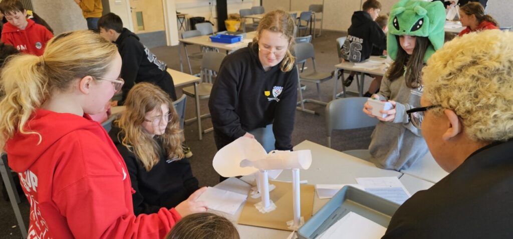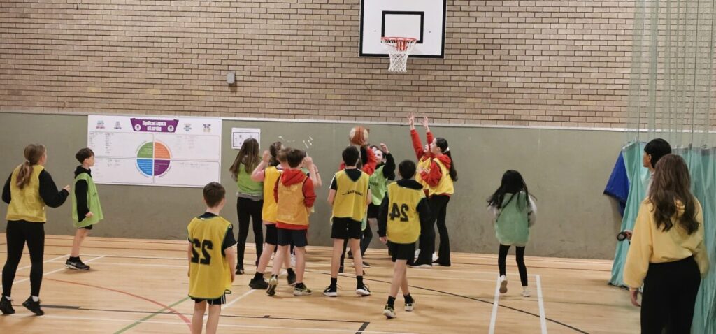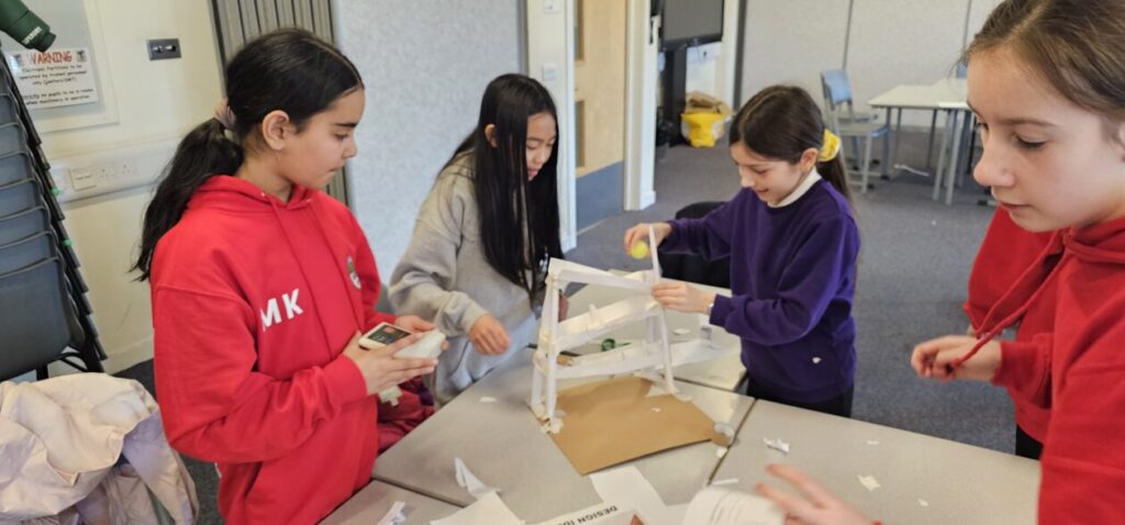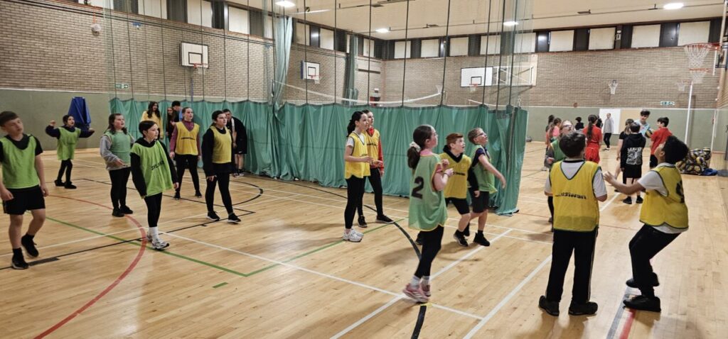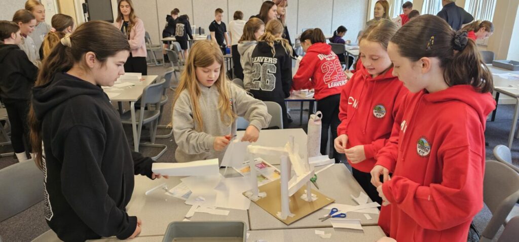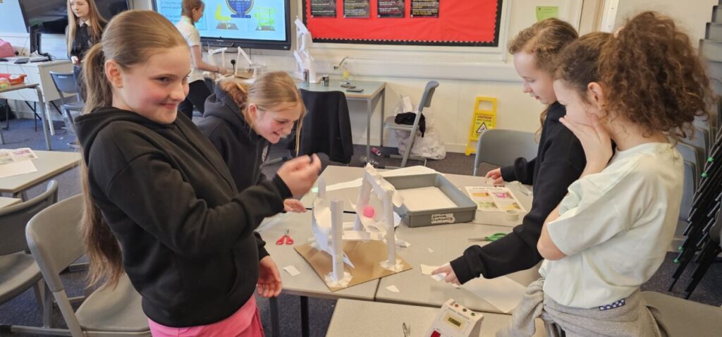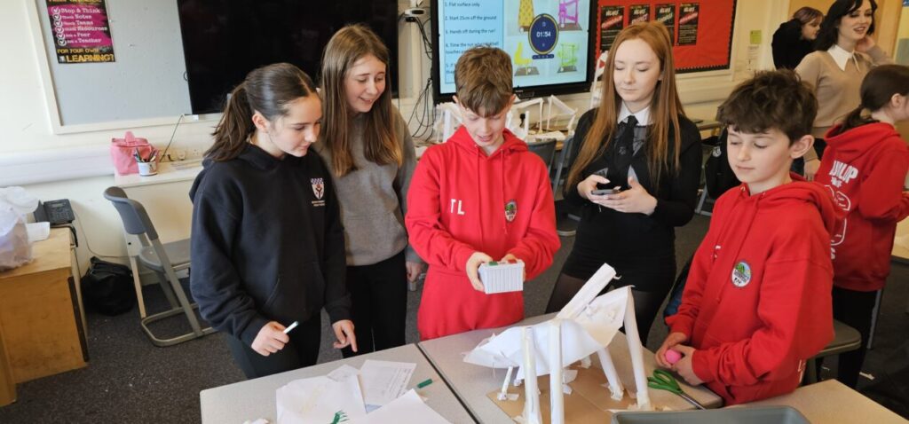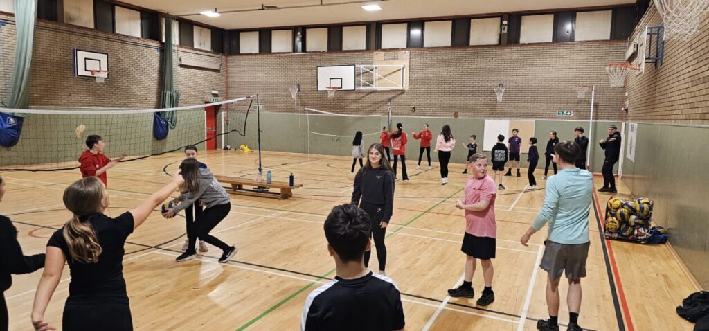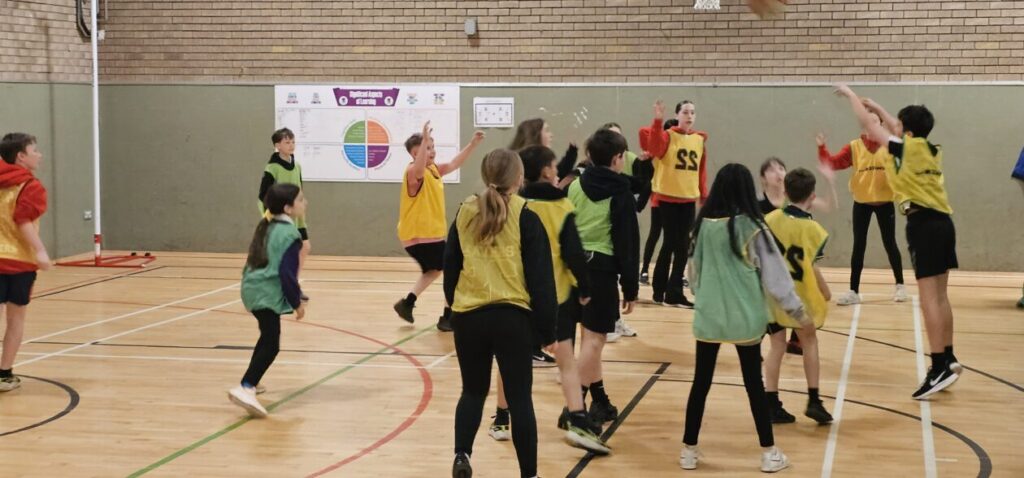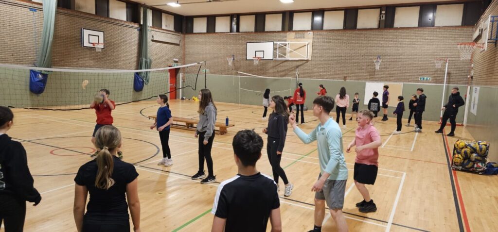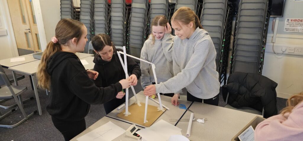 All the NRPS P7s went to Stewarton academy to work with P7s from Dunlop Primary. They were with the PE staff playing basketball and volleyball and with Miss Beattie PT of STEM working on a STEM challenge to see whose ball could stay on the run they created the longest.