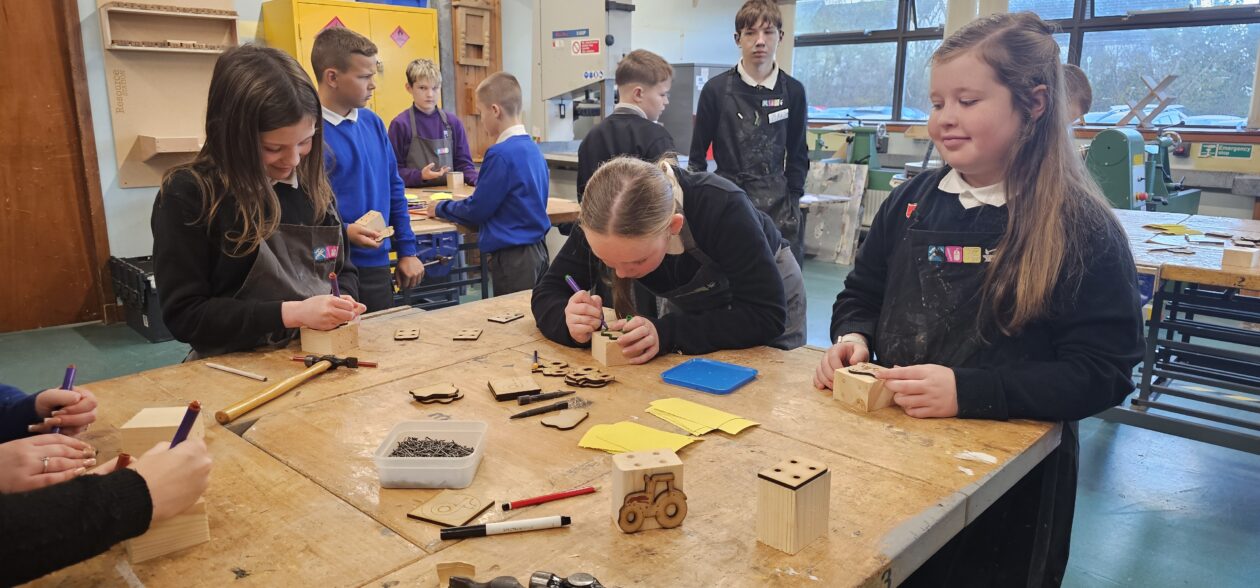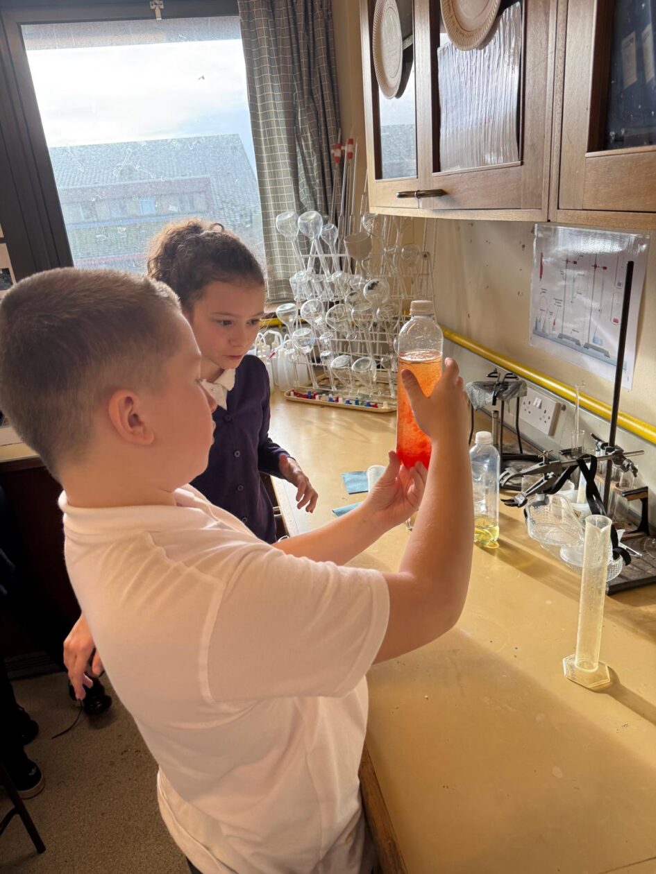 We had an amazing day at Stewarton Academy this week! We got to visit the science department where we learned about density of oil and water by making our own lava lamps. We also visited the technical department where we got to use some of the machines in the workshop to make pencil holders. Kilmaurs Primary were there too so we could start to make some new friends.