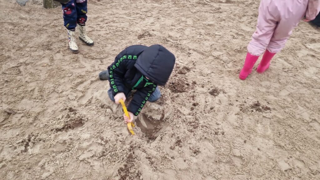 They experimented with different ideas to measure the depth of their digging by using non-standard units of measure (hands, feet and even legs to name a few). They developed their fine motor skills while creating number lines with chalk. Then took on different characters during role-play, it seems we have some budding baristas in the classes. Some children used the rain and paintbrushes, they had a lot of fun working on their letter formation and common words. There was also some design problems solved in the construction area with water jugs being built to catch the rain.