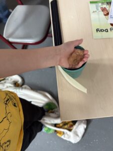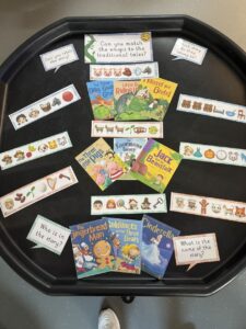 The Enormous Turnip– We learned about root vegetables and vegetables that are above and below ground. We also looked at how the water travels through plants and vegetables by putting celery into dyed water. The messy tuff tray allowed us to retell the story and made some turnip soup as a team- it was a huge success.