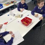 Today we practised spelling our words by making Christmas light decorations. We spelt out our common words by putting each letter on a lightbulb and then we stuck them on to a piece of string to make them look like string lights. We thought they were so good we put them up on our classroom window!