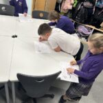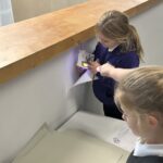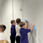 Today in Numeracy we participated in a shape hunt as part of our Maths Week Scotland activities. We had to find hidden bumble bees and shine a torch on them to reveal a shape. Once we had found the shapes we had to make a record of the name of the shape, how many sides it has, how many corners it has and draw a picture of it. We had great fun shape hunting!