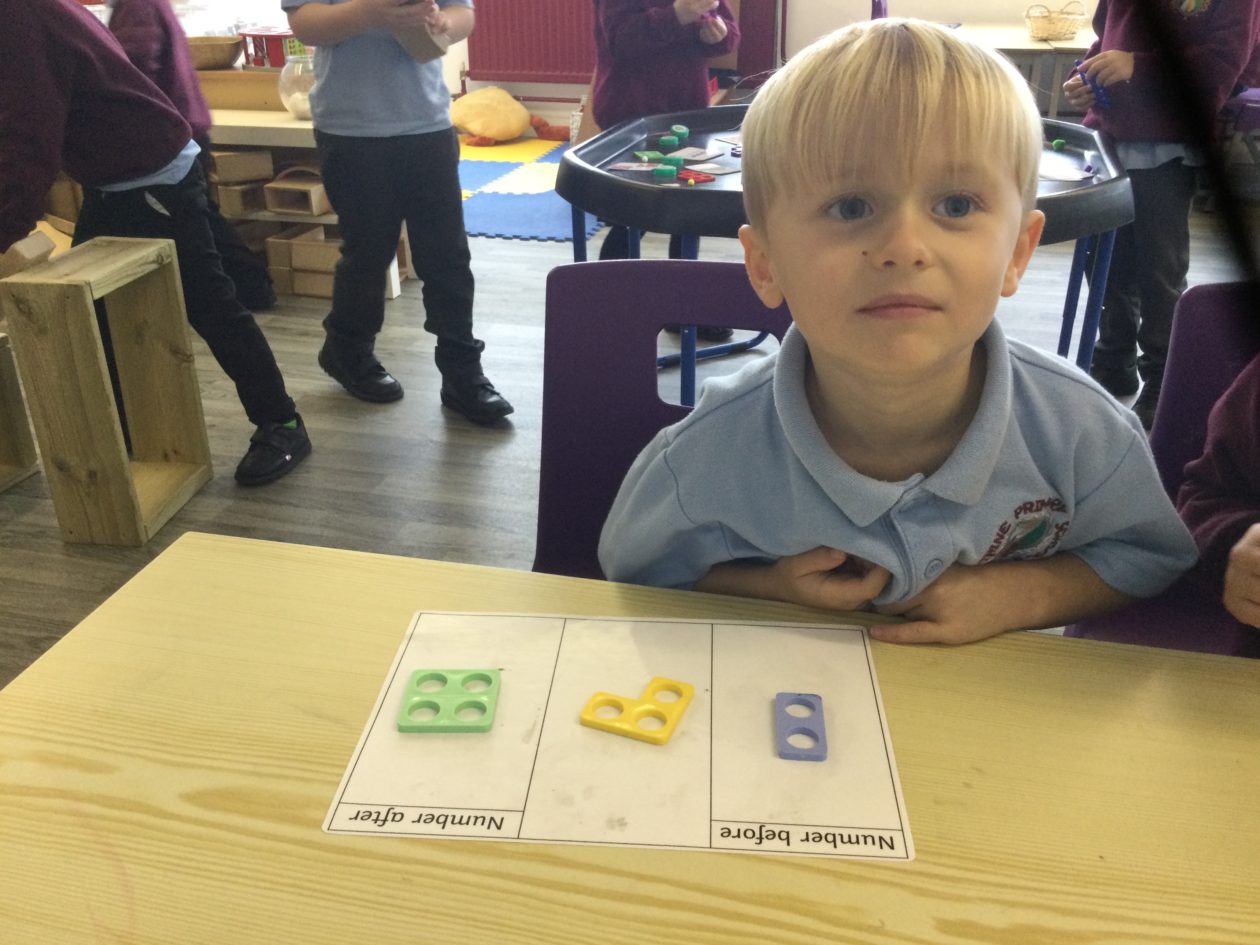 In maths we have continued to focus on numbers to 20. We have been looking at the numbers before and after with the Numicon