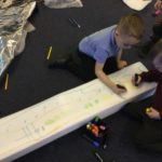 Just before the holidays we got a beautiful new Promethean board in our classroom but I think we were more excited by the giant box it came in and all the bubble wrap, foam and metallic foil used to protect it. We had so much fun creating things with all the packaging and lying on the floor drawing on the boxes.