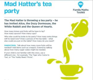 This week is all about organising the Mad Hatter’s Tea Party. Hope you enjoy this activity and if you’d rather chose a more familiar story – then feel free to change it!