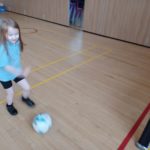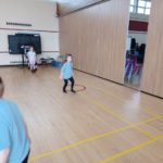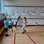 We had great fun in PE this week. We practiced shooting a ball into the goal, threw javelins, threw beanbags into hoops and practiced skipping.