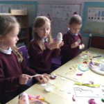 The children had great fun decorating their eggs for the Easter Egg competition. Their ideas were so creative and imaginative. Easter has been the theme in our class this week and the children have been making models of Easter bunnies as well as completing Easter themed activities and making Easter cards.