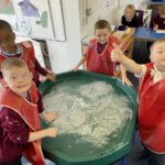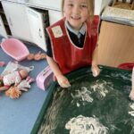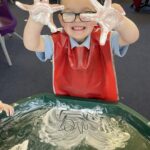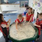 In literacy we were focusing on the common words be, he, me and we. We had great fun writing these words in the foam.