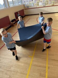 In PE we have started gymnastics. We were very excited to get the mats out!
