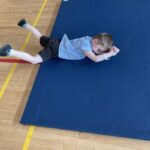 We continued with our gymnastics this week and got out some more of the equipment. This week we were focusing on travelling – along the bench and mat and up and over the frame.