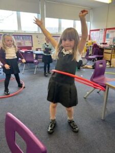 We have also had lots of fun hula hooping in class this week.  Jessica spent a lot of time practising and was very proud when she managed to keep it up! Well done!