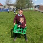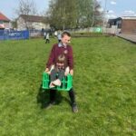 We have taken the opportunity to enjoy the lovely weather by playing outside.  We have been climbing, jumping, swinging and playing football.