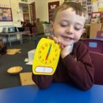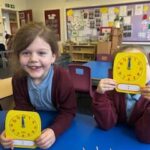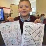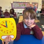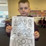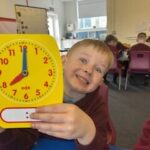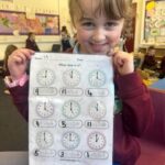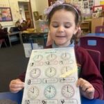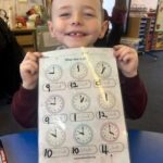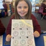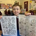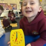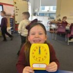 In numeracy we have been learning o’clock times on an analogue clock.