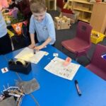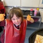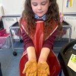 In maths, we continued our learning about sharing. We have been exploring halving. We set up our own pizza shop and had to carefully split our pizza into two equal parts. We know that both parts need to be the same size for it to be a half.