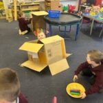 We had lots of fun this week too. Discovery Dens, finger painting, gymnastics, cardboard boxes and disco dancing!