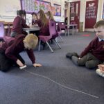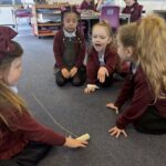 We have also taken part in all sorts of fun estimation activities including a hoops and beanbag game and estimating the length of ourselves using string. We are able to make close estimations and then count to check how close we were.