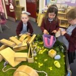 In numeracy, we have started to learn about sharing. We introduced our new concept using a lovely story called ‘The Doorbell Rang’. We listened to the story and took on roles to act it out. We got to share out some delicious cookies between our characters but just when we had managed to share them out fairly…uh oh! The doorbell rang and in came some new guests! We managed to share them out again but just as we did… the doorbell rang, AGAIN!