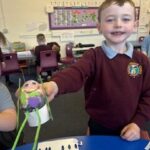 Through our Forces topic, we have been investigating forces in everyday objects.  We used fantastic vocabulary when we were experimenting with forces.  We were pushing, pulling, stretching, rubbing, squashing, twisting and bouncing.  The children were also really interested in gravity so we enjoyed watching videos of astronauts eating in space!