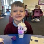 On Thursday and Friday, we worked on some beautiful drawings of flowers in a vase. We used paint sticks in lots of vibrant colours to bring our flowers to life. We then cut these out and stuck them onto a card. If you are a mum of  a Primary 1 who would like a little surprise on Sunday, then look away now!