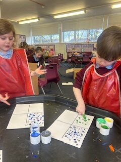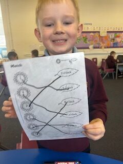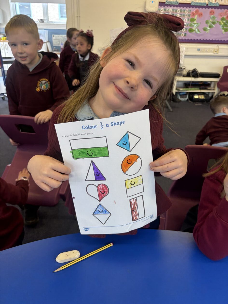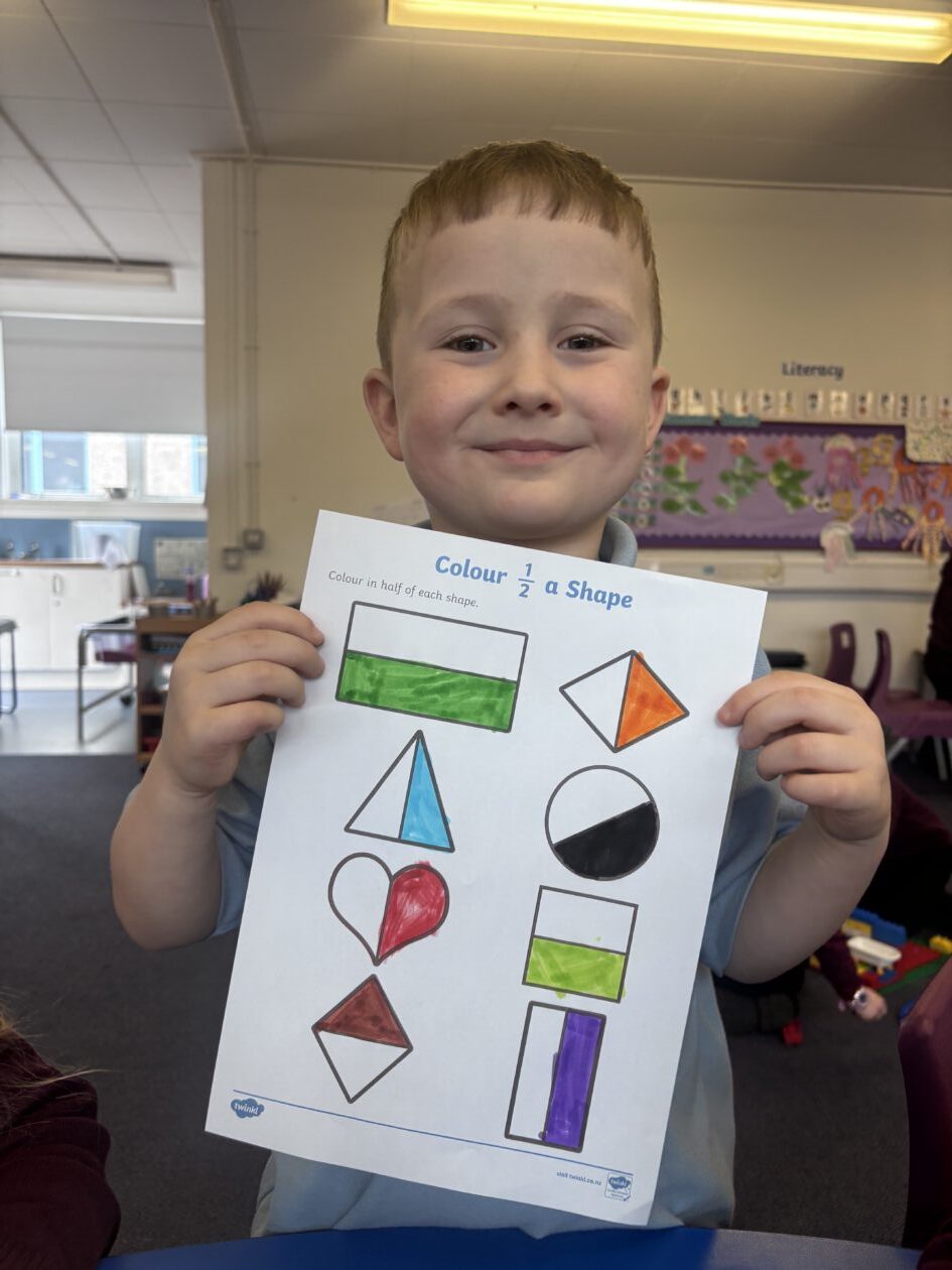 In maths, we continued our learning about sharing. We have been exploring halving. We set up our own pizza shop and had to carefully split our pizza into two equal parts. We know that both parts need to be the same size for it to be a half.