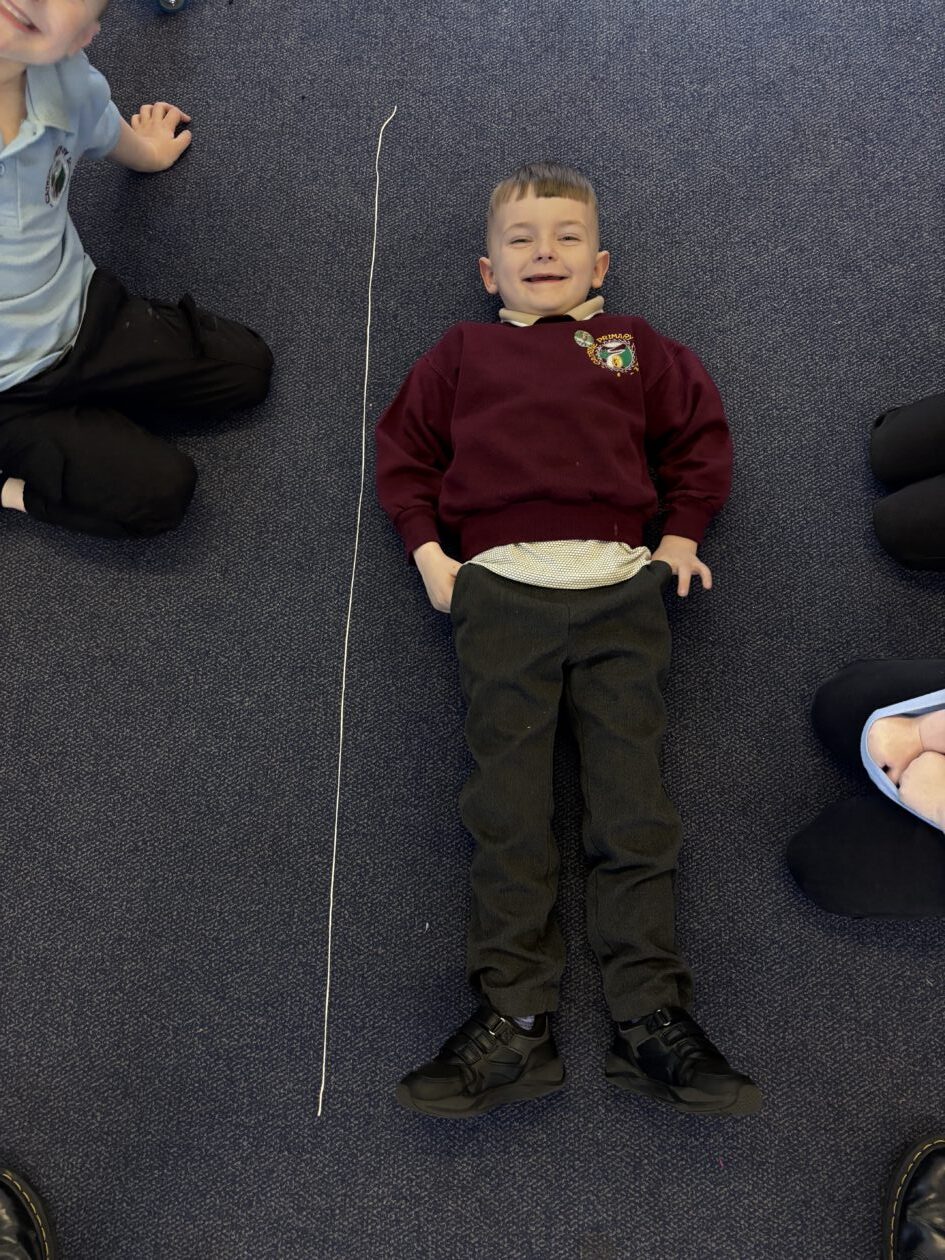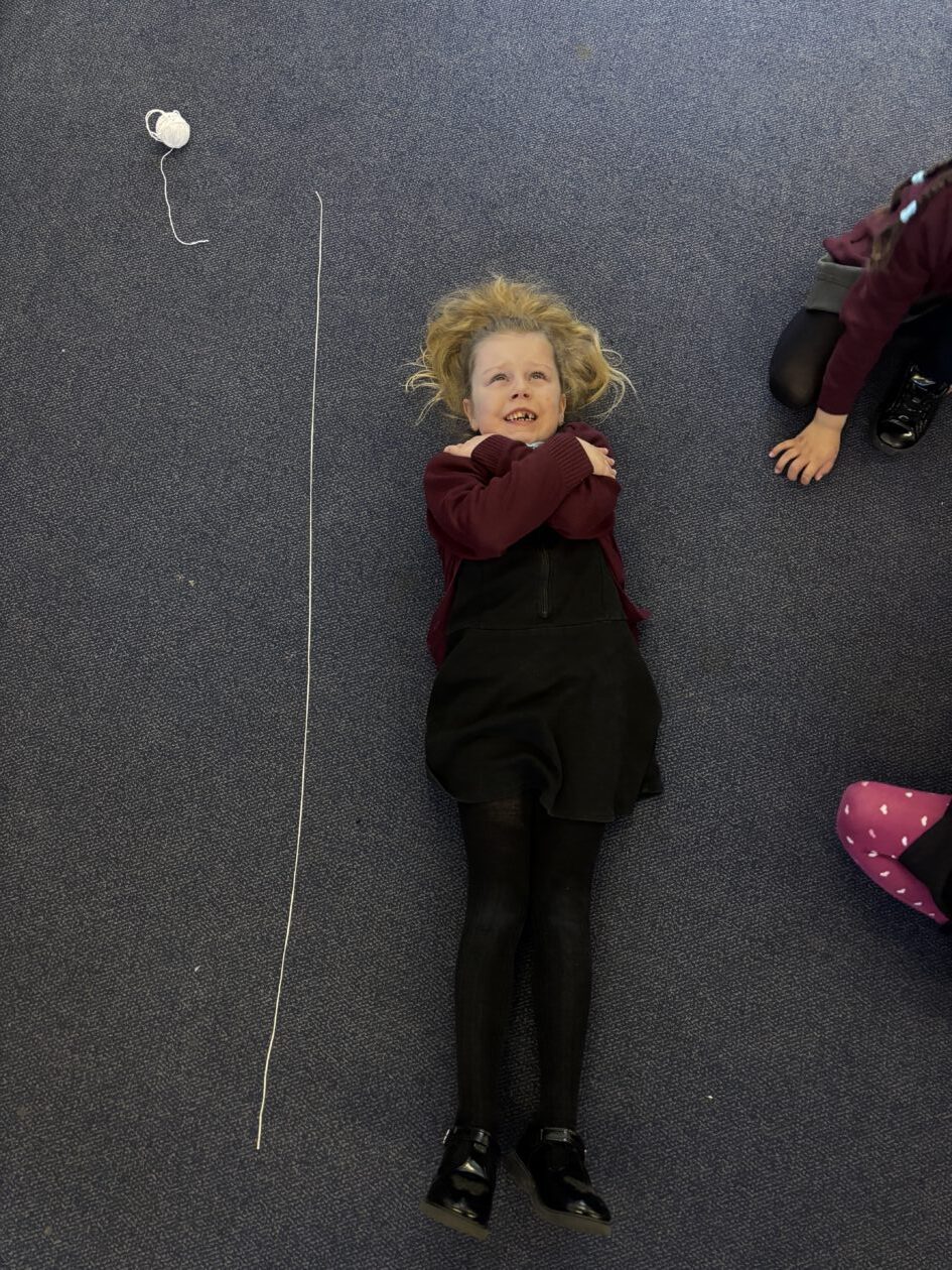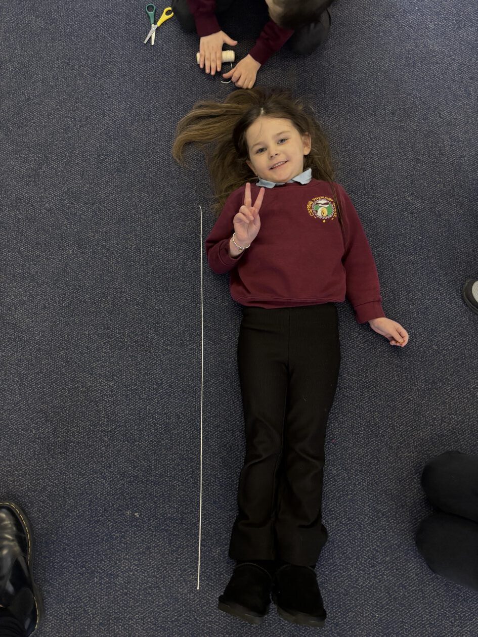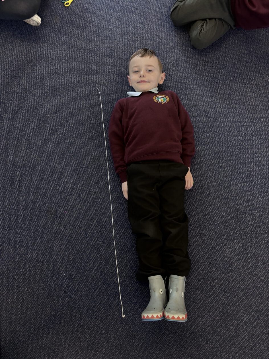 We have also taken part in all sorts of fun estimation activities including a hoops and beanbag game and estimating the length of ourselves using string. We are able to make close estimations and then count to check how close we were.