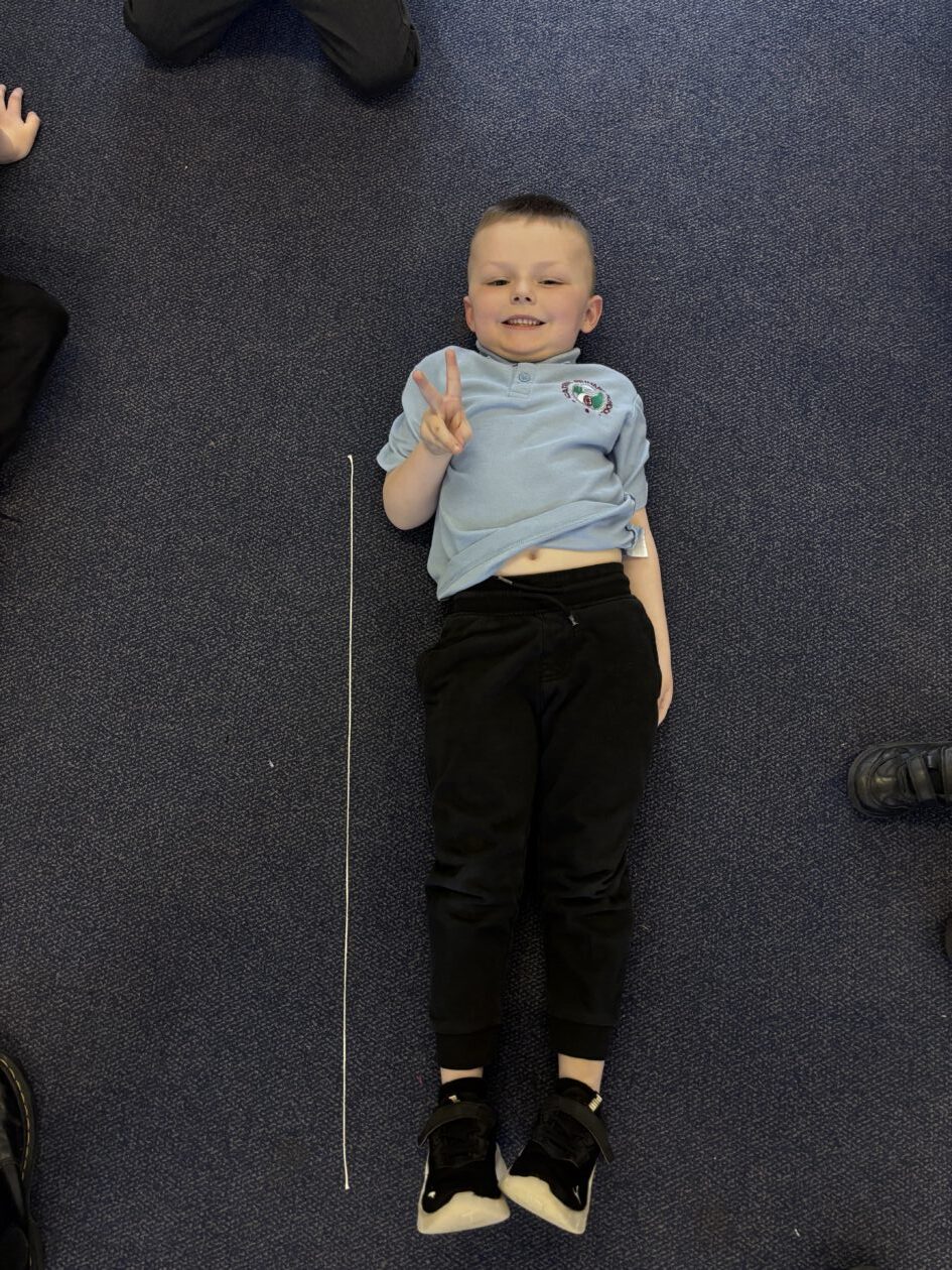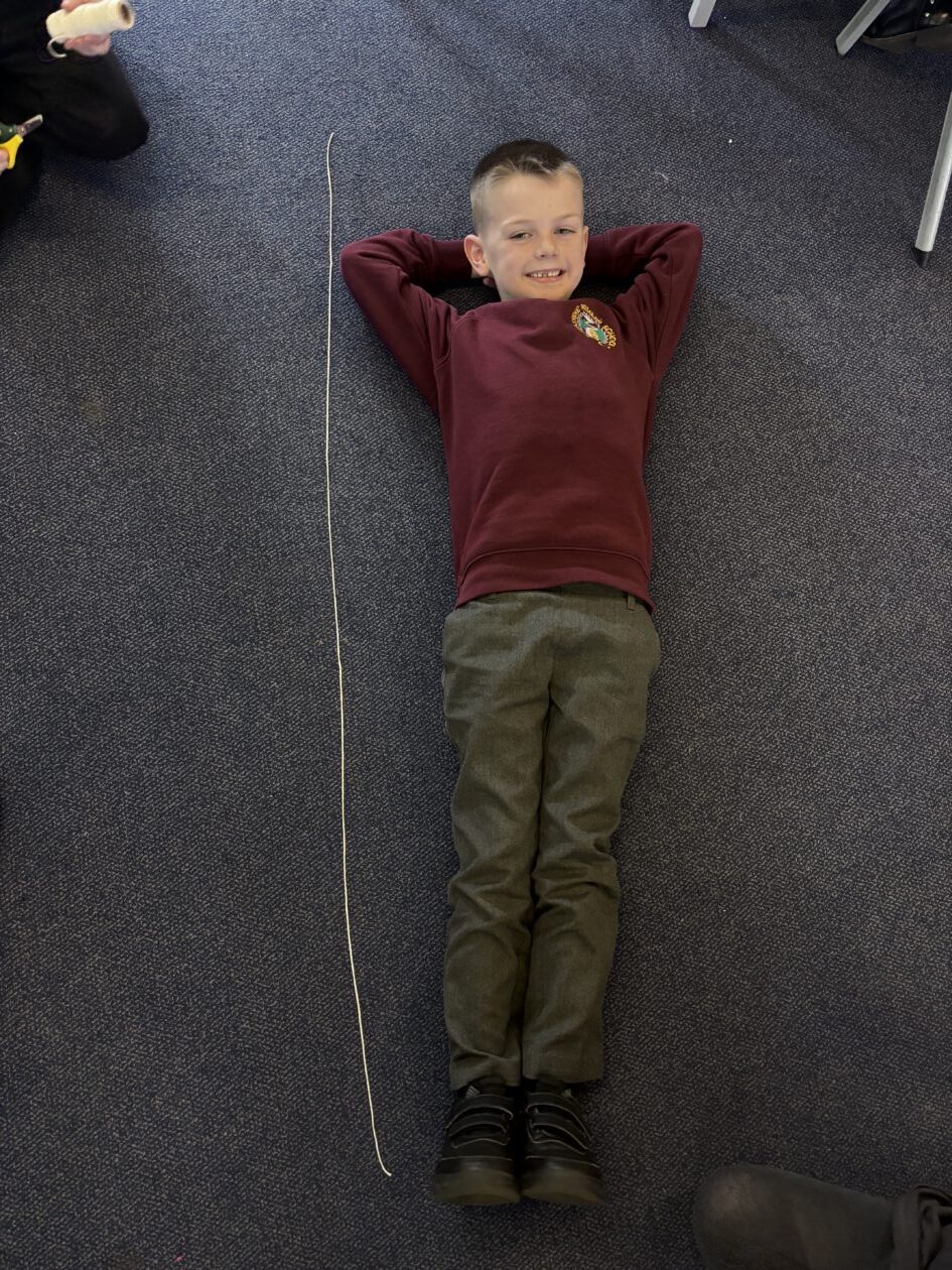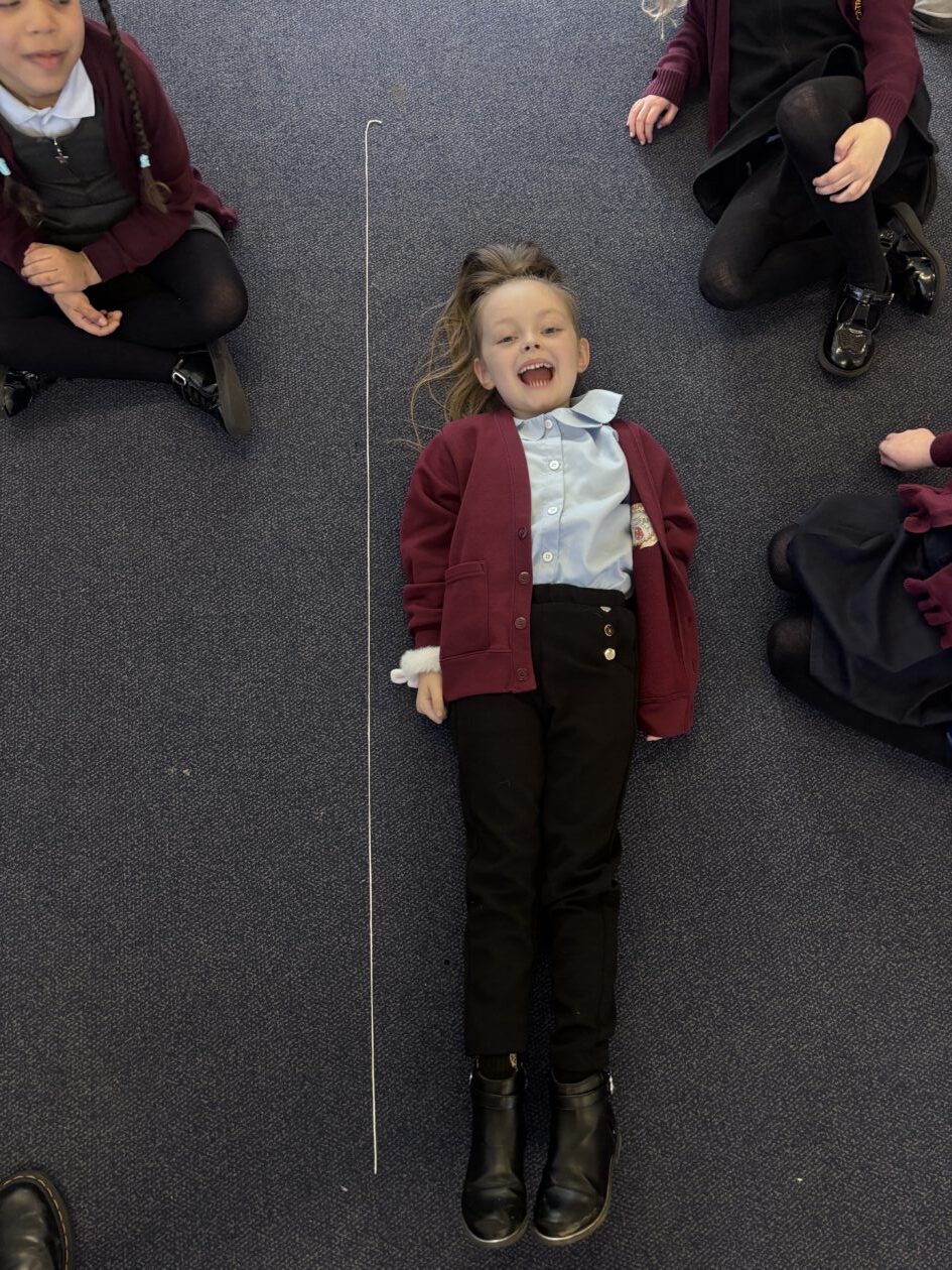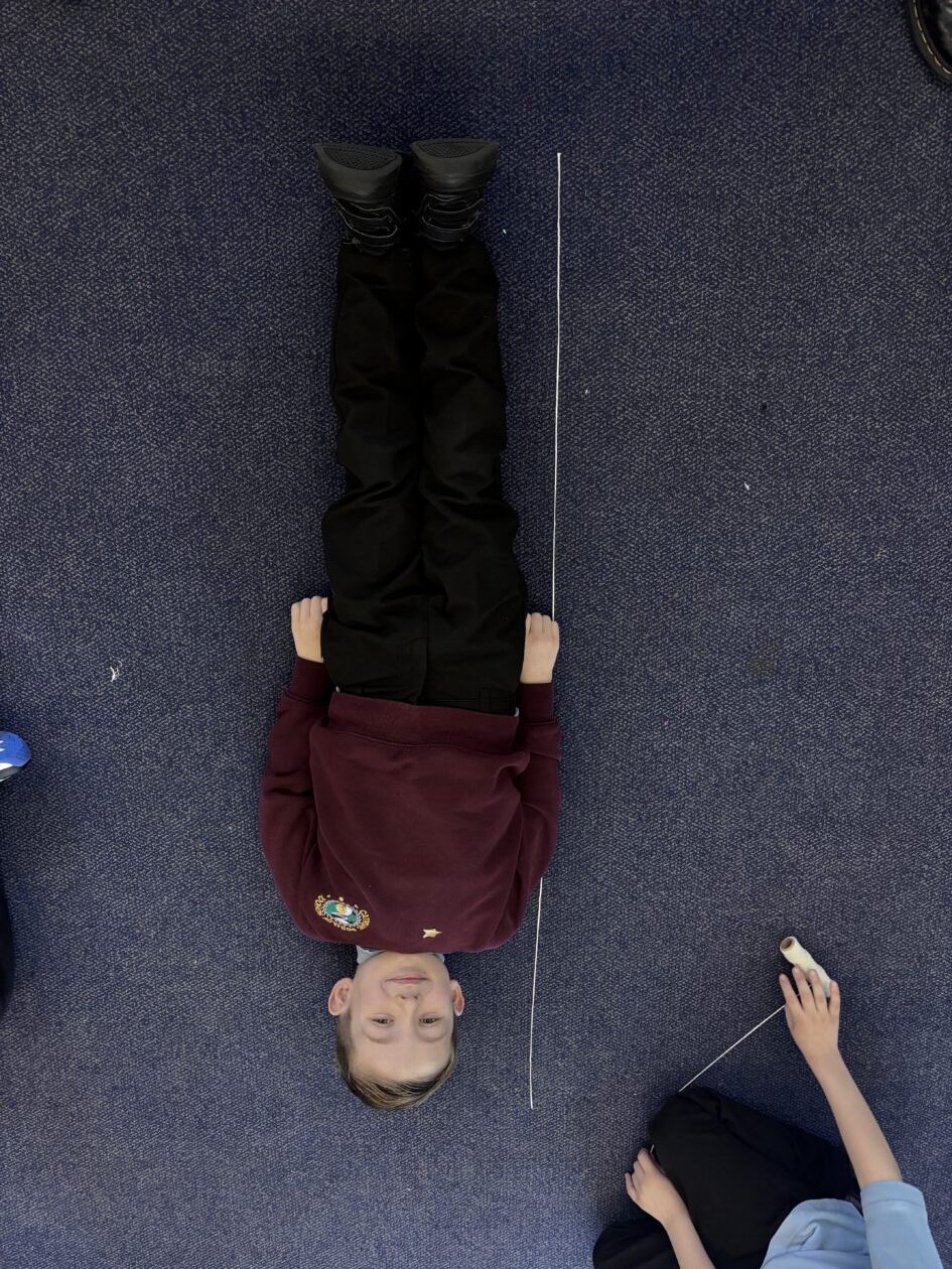 We have also taken part in all sorts of fun estimation activities including a hoops and beanbag game and estimating the length of ourselves using string. We are able to make close estimations and then count to check how close we were.