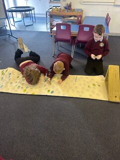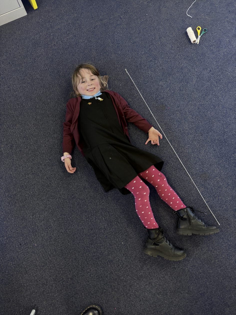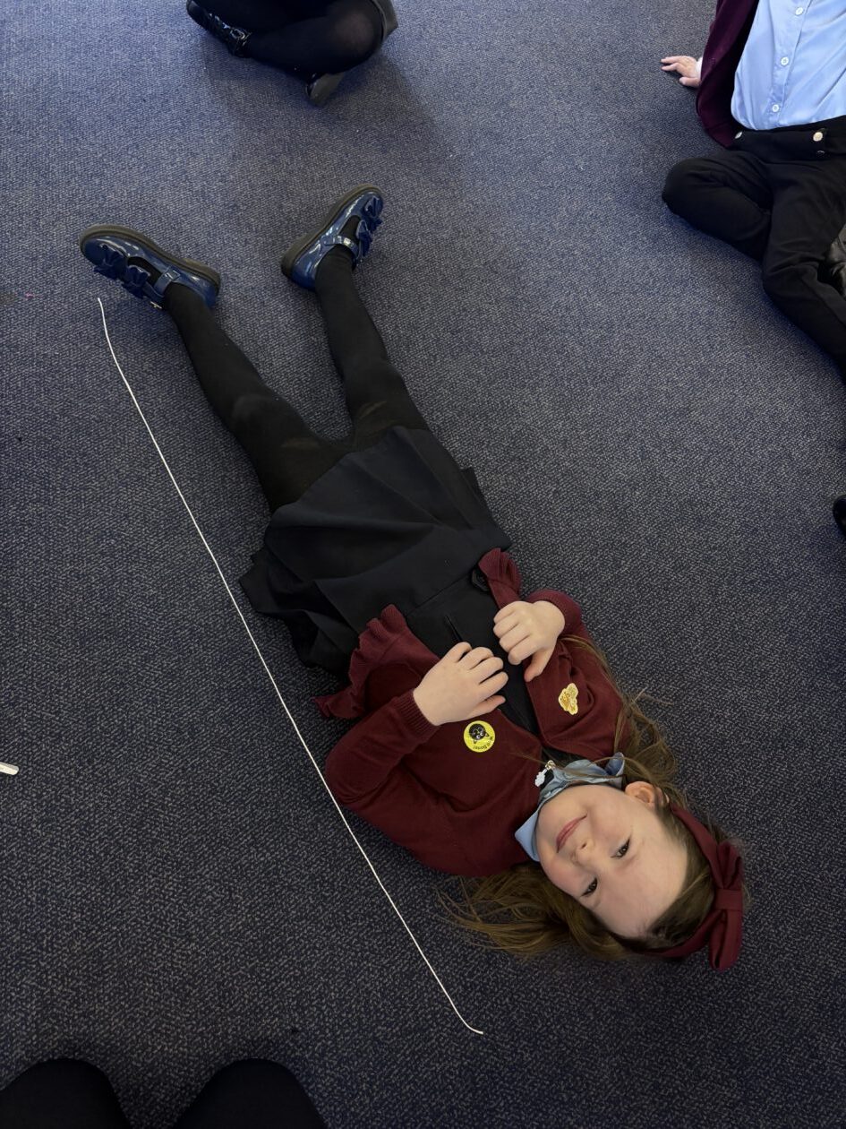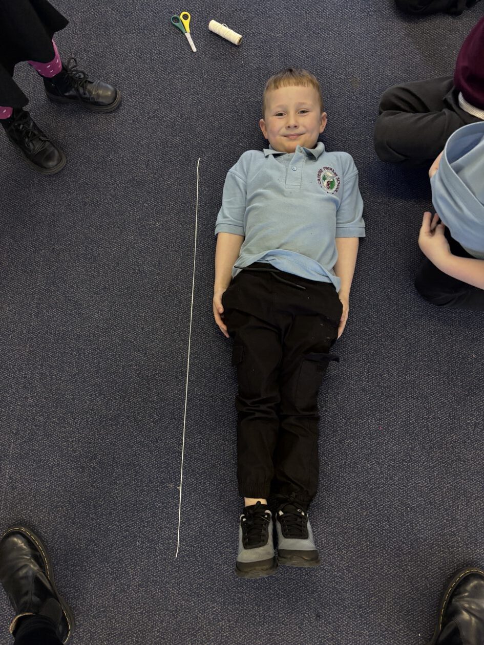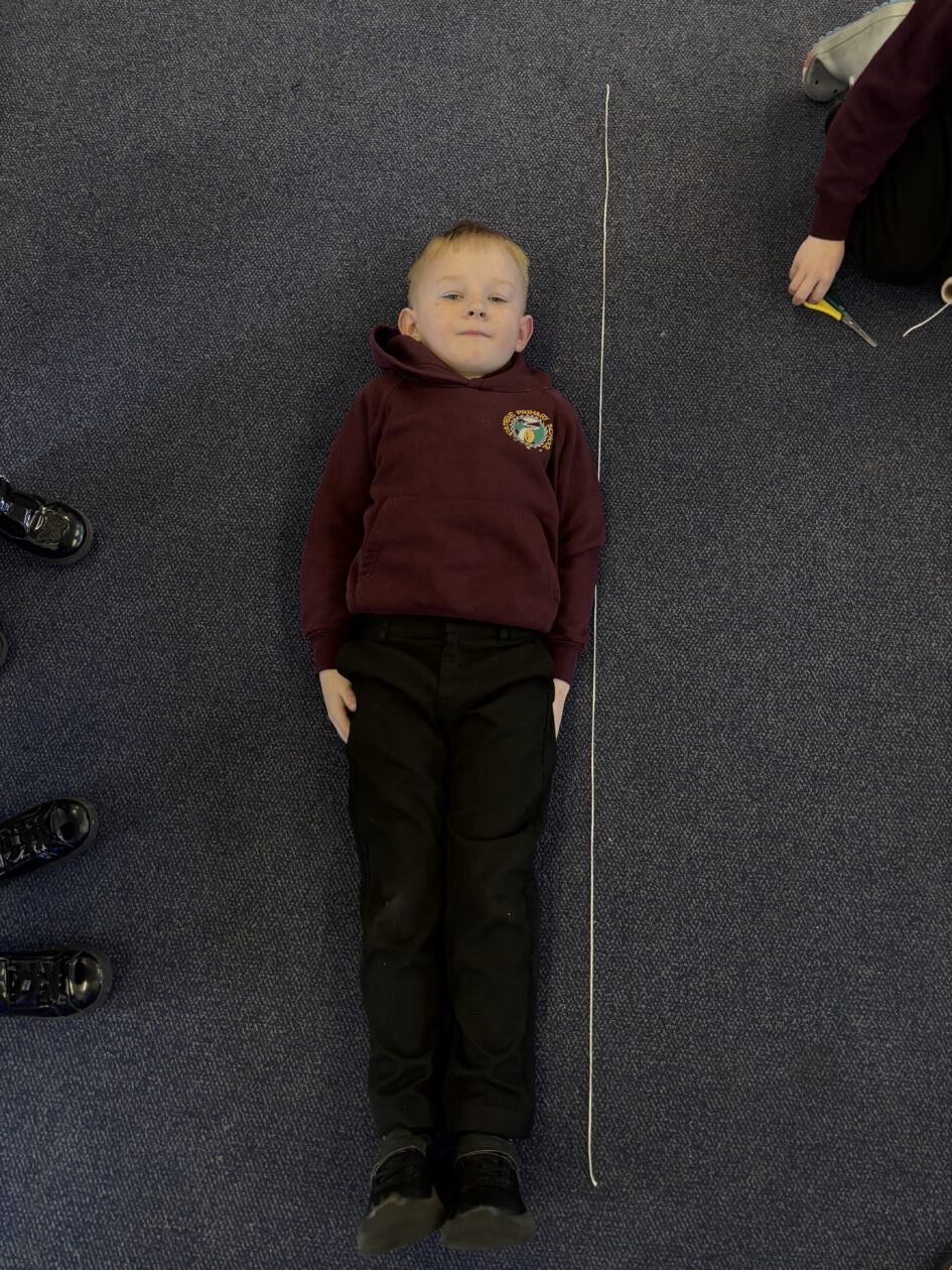 We have also taken part in all sorts of fun estimation activities including a hoops and beanbag game and estimating the length of ourselves using string. We are able to make close estimations and then count to check how close we were.