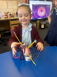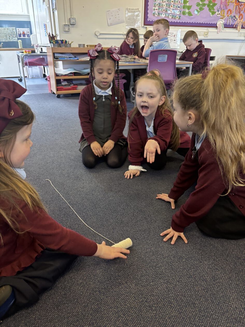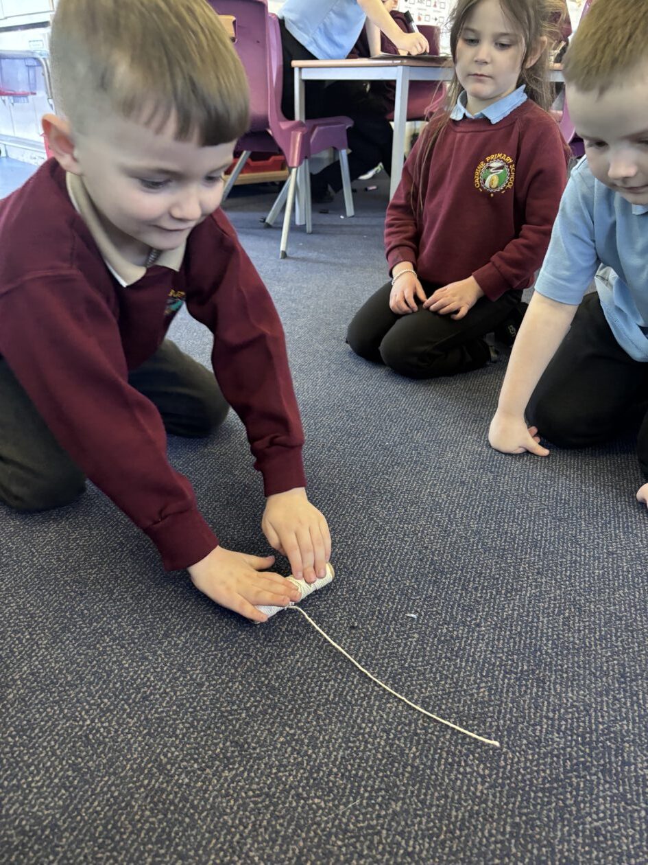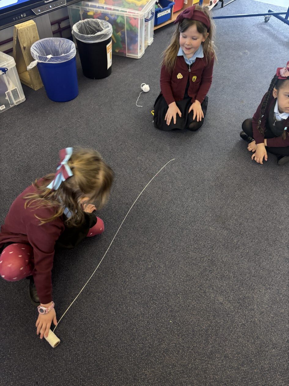 Through our Forces topic, we have been investigating forces in everyday objects.  We used fantastic vocabulary when we were experimenting with forces.  We were pushing, pulling, stretching, rubbing, squashing, twisting and bouncing.  The children were also really interested in gravity so we enjoyed watching videos of astronauts eating in space!