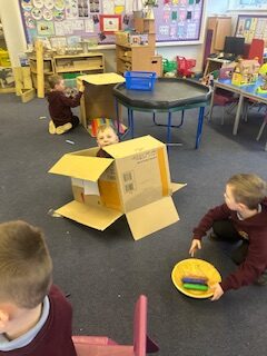 We had lots of fun this week too. Discovery Dens, finger painting, gymnastics, cardboard boxes and disco dancing!