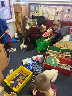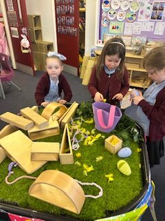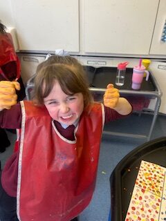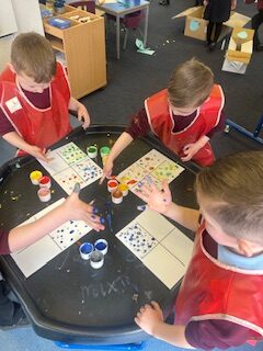 In numeracy, we have started to learn about sharing. We introduced our new concept using a lovely story called ‘The Doorbell Rang’. We listened to the story and took on roles to act it out. We got to share out some delicious cookies between our characters but just when we had managed to share them out fairly…uh oh! The doorbell rang and in came some new guests! We managed to share them out again but just as we did… the doorbell rang, AGAIN!