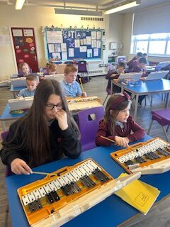 We’ve also been busy being very creative this week.  We created wonderful watercolour art and had lots of fun playing the glockenspiels along to music.