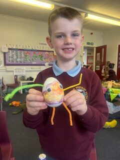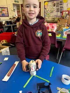 Here are some pictures of the wonderful creations for our annual Egg Design competition and our ‘shared play’ with Primary 2. All of our designs were absolutely brilliant. We really do have some very creative boys and girls in Primary 1.
